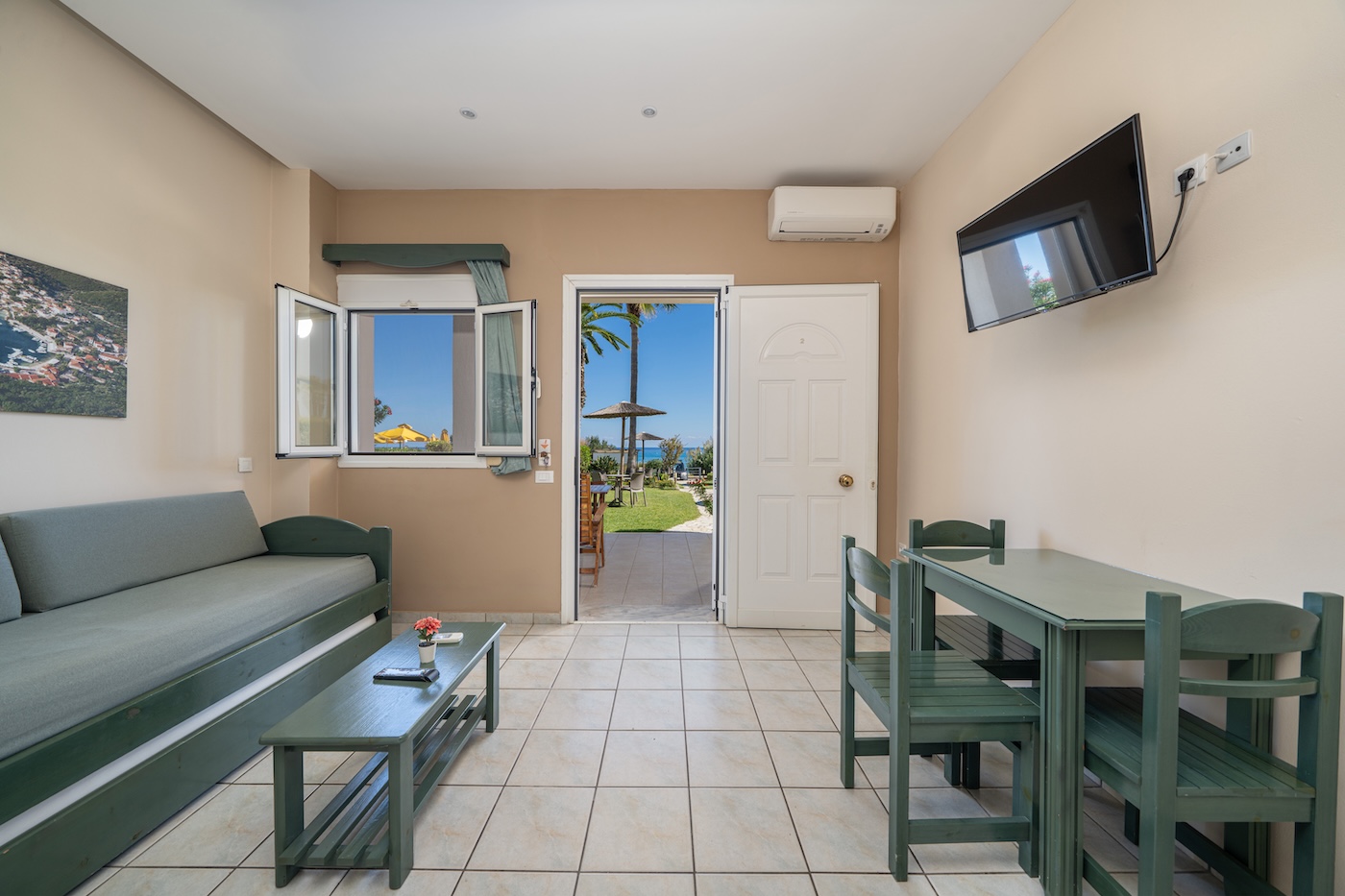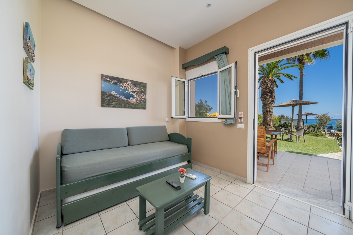 No 2. One bedroom family apartment on the ground floor. Great front sea view! (2+2 persons)