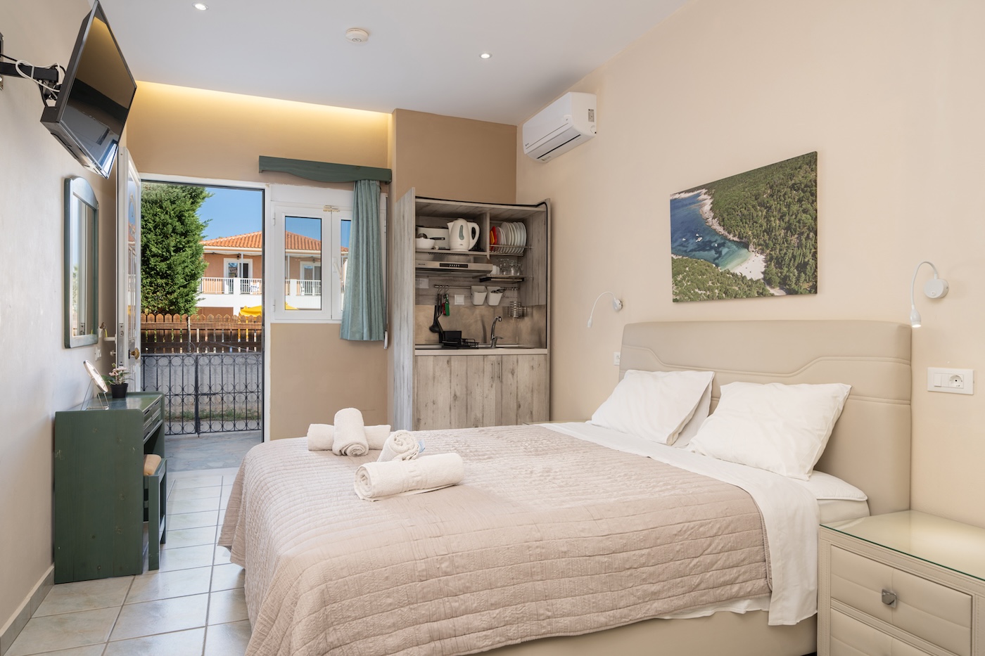 No 3. Two-bed studio on the ground floor with side sea view. - double bed