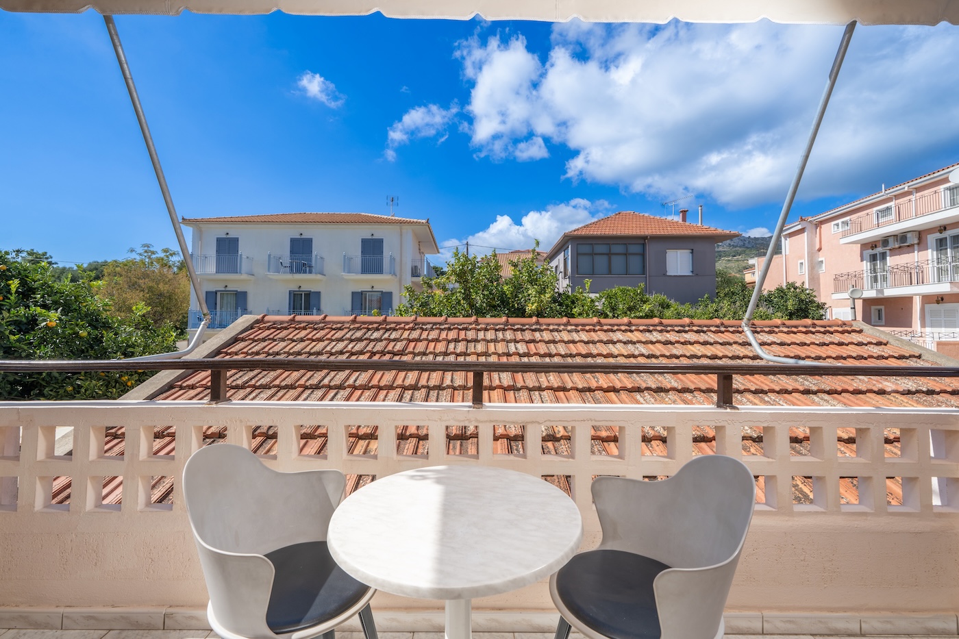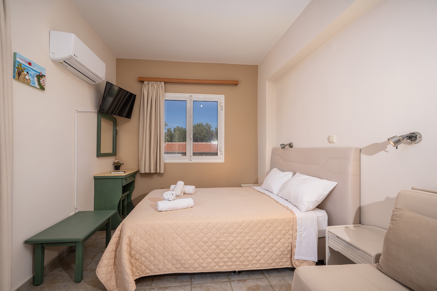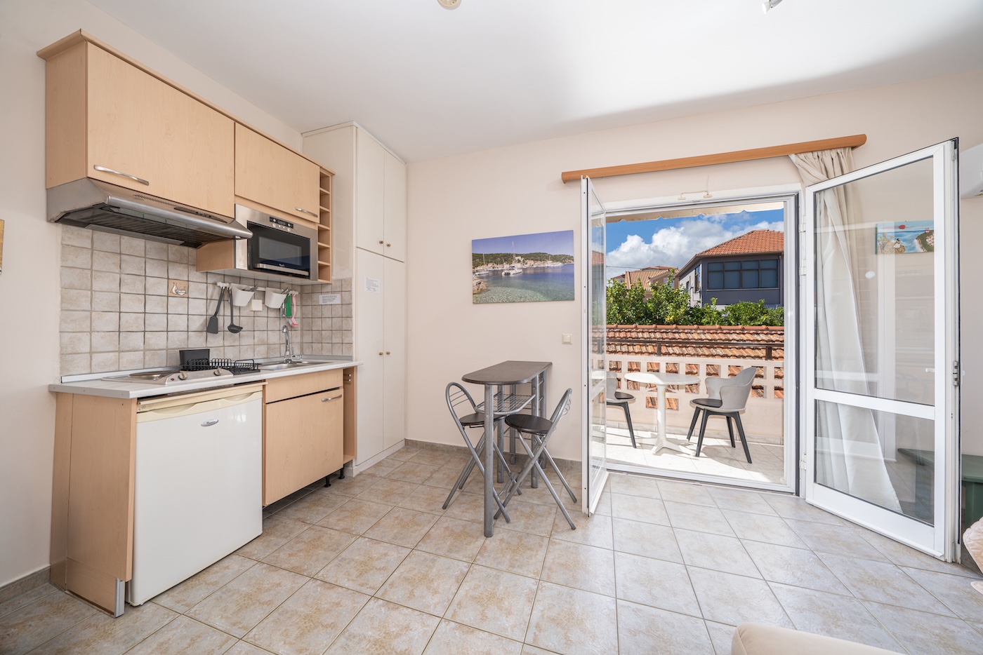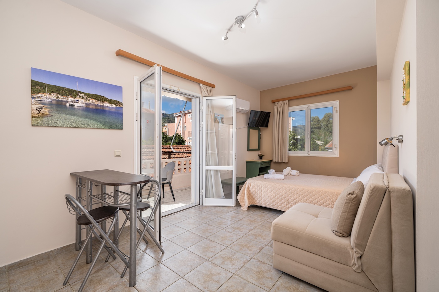 No 7. Three-bed studio on 1st floor with balcony and view on the swimming pool.(One double+1 single beds)