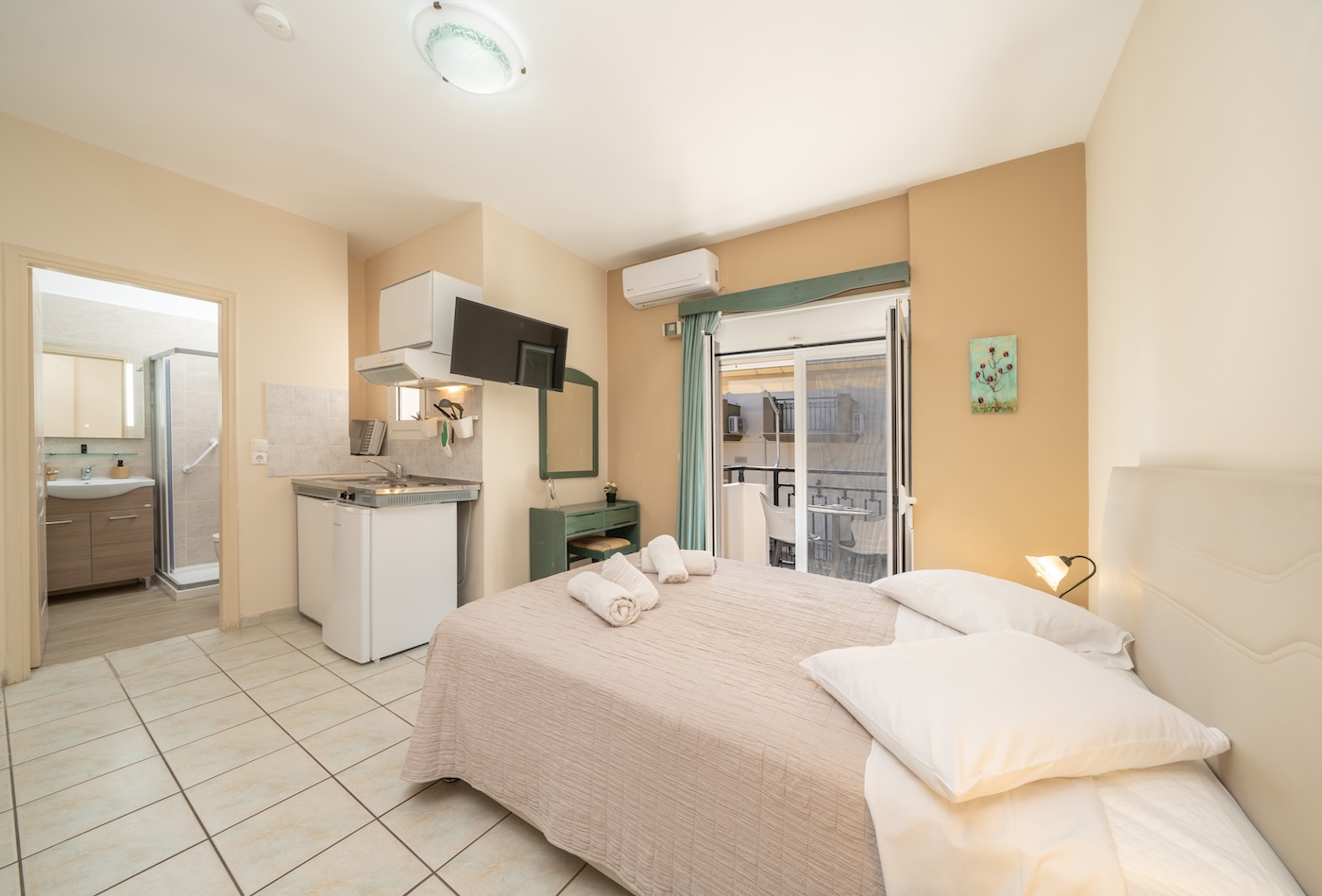 No 10. Studio on 1st floor with balcony and side sea view.(One double bed)